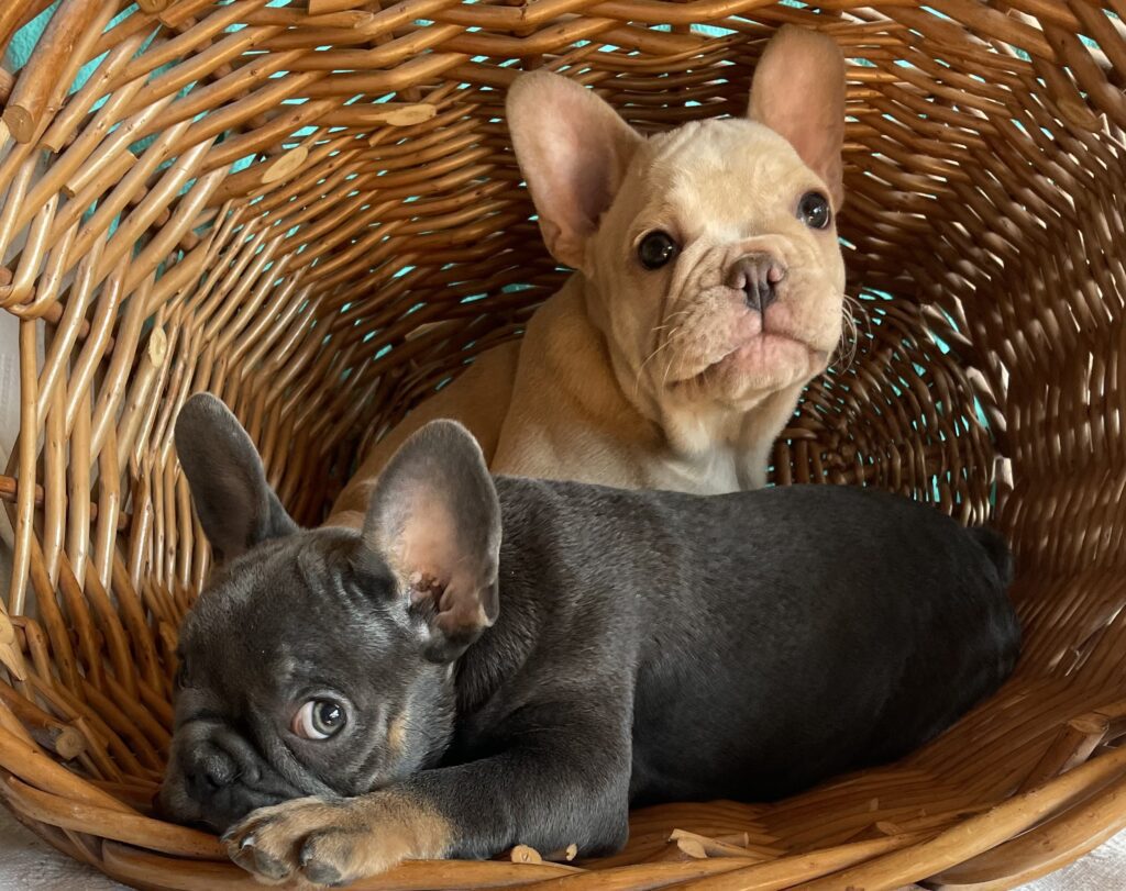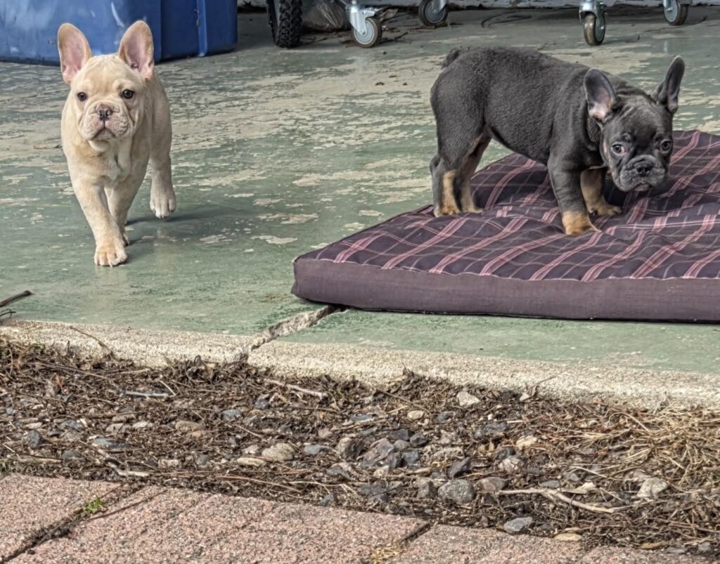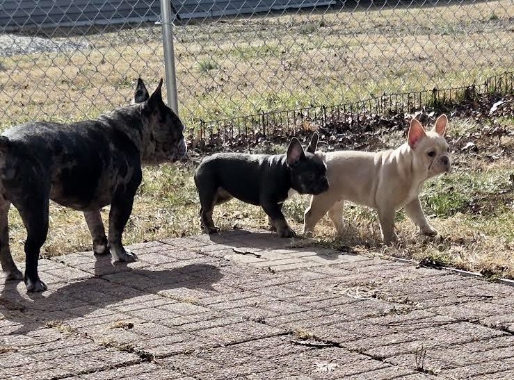Puppies started puppy training, on 1-15-26 with a great family who has 2 frenchies from us and loves puppies and training! They already are crate trained, housebroken and going potty outside, doing stairs and ramps! Super smart pups!