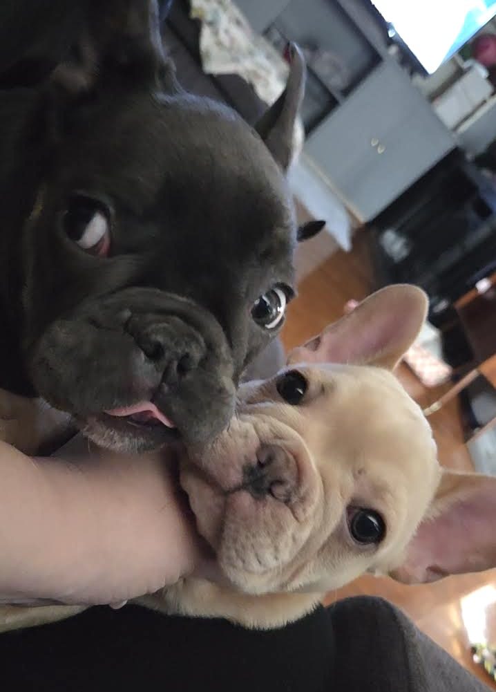 Frenchies are just super silly dogs, our Frenchies love everyone and get along wonderfully with the other dogs and cats.